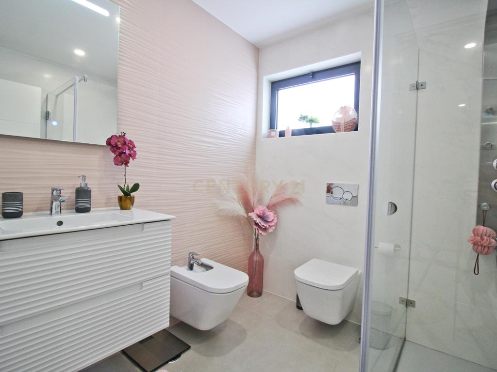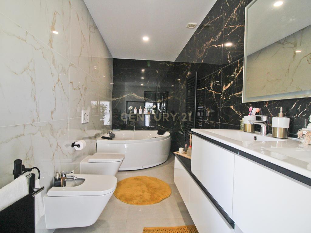 A moradia dispõe de 4 quartos espaçosos e 4 casas de banho, todos com acabamentos de alta qualidade. O layout em open space proporciona uma fluidez perfeita entre os ambientes, enquanto as janelas duplas e as paredes pintadas garantem um ambiente acolhedor e luminoso. Equipamentos modernos, como estores elétricos, aquecimento de água elétrico e um sistema de vídeo intercomunicação, elevam ainda mais o conforto e a segurança da sua nova casa.
